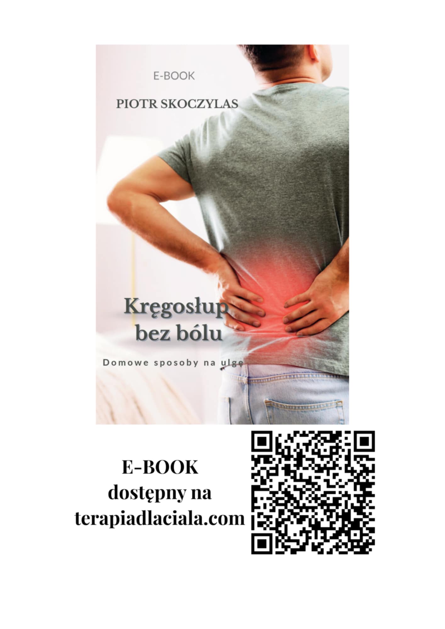 E-book "Kręgosłup – holistyczna terapia" to kompleksowy przewodnik, który pomoże zadbać o zdrowie kręgosłupa w sposób naturalny. Jest przeznaczony zarówno dla profesjonalistów, jak i dla osób prywatnych, które chcą poprawić zdrowie swojego kręgosłupa. Oferuje praktyczne porady, które wspierają zdrowie kręgosłupa i poprawiają jakość życia. Znajdziesz tam tematy: 1. Czym jest ból ? 2. W takim razie, z czego bierze się ból kręgosłupa ? 3. Budowa kręgosłupa 4. Układ nerwowy 5. Diagnostyka splotu ramiennego 6. Diagnostyka splotu lędzwiowego 7. Diagnostyka splotu krzyżowego 8. Badanie postawy 9. Płaszczyzny ciała 10. Rotacja kości biodrowej w płaszczyźnie czołowej 11. Rotacja kości biodrowej w płaszczyźnie strzałkowej 12. Rotacja miednicy w płaszczyźnie poprzecznej 13. Rdzeń przedłużony 14. Kość krzyżowa, a ból kręgosłupa 15. Złe ustawienie kości krzyżowej a skolioza 16. Unerwienie segmentarne mięśni 17. Unerwienie segmentarne skóry 18. Testy funkcjonalne 19. Zespół mięśni pochyłych 20. Zespół naprężacza powięzi szerokiej 21. Zespół mięśnia prostego uda 22. Zespół mięśnia czworobocznego lędźwi 23. Ustawienie kości krzyżowej a rwa kulszowa 24. Napięcie więzadeł biodrowo - krzyżowych 25. Napięcie więzadeł biodrowo - lędźwiowych 26. Jak się ma rwa barkowa do ustawienia miednicy ? 27. Praca z rdzeniem przedłużonym a bóle kręgosłupa 28. Ból kręgosłupa a nerw błedny 29. Główne taśmy anatomiczne wg. Thomasa Mayersa 30. Ból kręgosłupa a system powięziowy 31. Mięśniowo powięziowe punkty spustowe 32. Ból kręgosłupa a napięcie na stawie skroniowo - żuchwowym 33. Bóle kręgosłupa a problemy wisceralne 34. Bóle kręgosłupa psychosomatyczne 35. Bóle kręgosłupa a pasożyty w ciele 36. Niedobór witamin a ból kręgosłupa 37. Zła dieta przyczyna bólu kręgosłupa 38. Suplementacja wspierająca zdrowy kręgosłup 39. Aktywnośc fizyczna a zmniejszenie bólu kręgosłupa